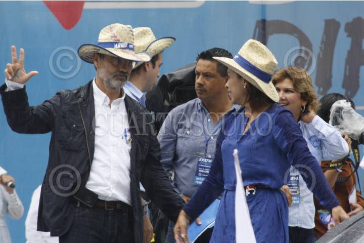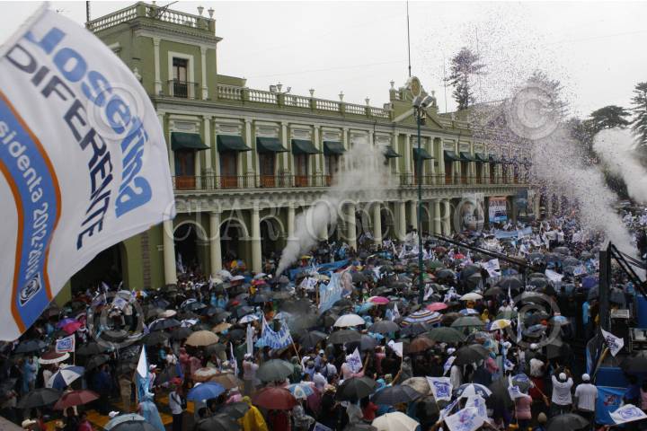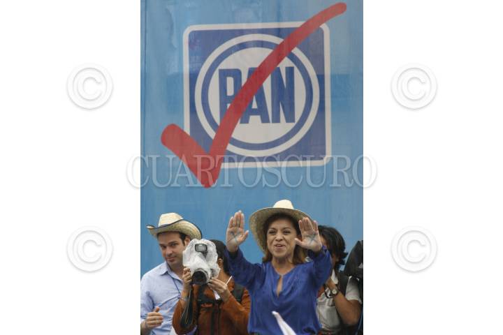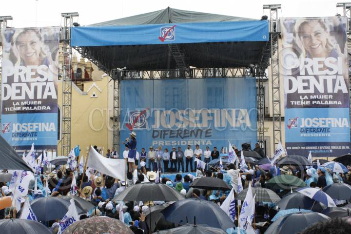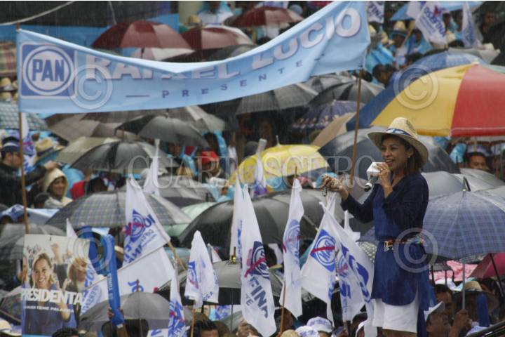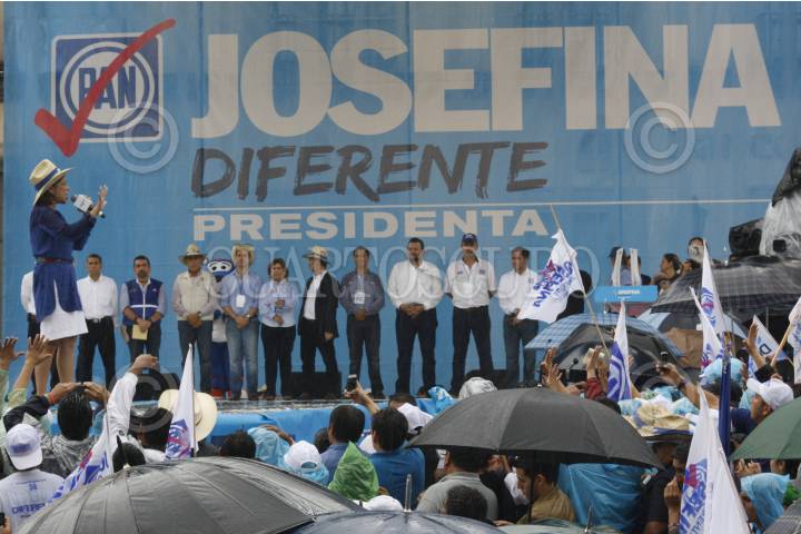 XALAPA, VERACRUZ, 16JUNIO2012.- A pesar de la lluvia, la candidata a la Presidencia de la República por el PAN, Josefina Vázques Mota, llevó a cabo un mitin con sus simpatizantes en la Plaza Lerdo. Al evento lo acompañaron el dirigente Gustavo Madero, Miguel Ángel Yunes Linares y candidatos a diputados del municipio xalapeño. FOTO: JAN VÁZQUEZ /CUARTOSCURO.COM
