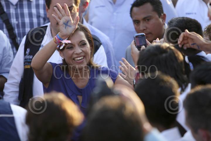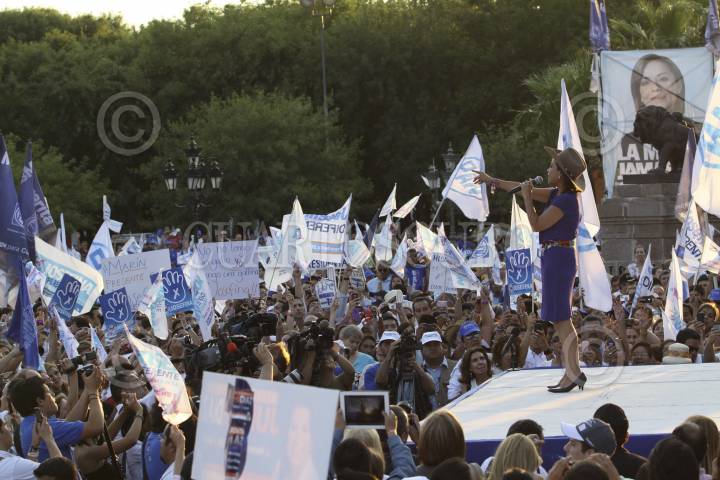 MÉXICO, D.F., 26JUNIO2012.- Josefina Vázquez Mota, candidata a la presidencia por el Partido Acción Nacional, cierra su campaña en Nuevo León ante una gran cantidad de simpatizantes que se dieron cita en la Macroplaza de Monterrey. FOTO: GABRIELA PÉREZ MONTIEL /CUARTOSCURO.COM