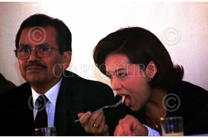 Heladio Ramírez, dirigente de la Confederación Nacional Campesina, desayuna con la secretaria de Desarrollo Social, Josefina Vázquez, durante la reunión organizada para abordar temas sobre la situación del campo. FOTO:Eunice Adorno/CUARTOSCURO.COM