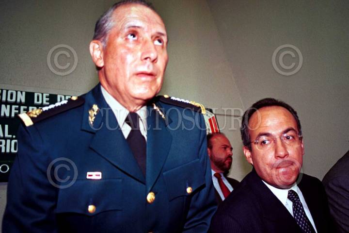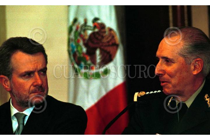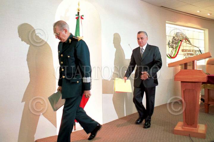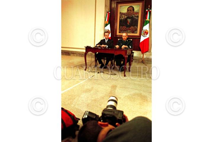 Ricardo Clemente Vega García, secretario de a Defensa Nacional, ofreció una conferencia conjunta con Rafael Macedo de la Concha, procurador general de la república para informar de la captura de Benjamín Arellano Félix, integrante del Cártel de Tijuana, asi mismo, confirmo que el cuerpo de Ramón Arellano Félix, si es el del gatillero muerto en Mazatlán el pasado 10 de febrero. FOTO: Juan Sotelo/CUARTOSCURO.COM