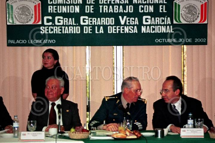 Ricardo Gerardo Clemente Vega García se reunió con Alfredo Ochoa, presidente de la Comisión de la Defensa en la Cámara baja, a esta reunión asistió el lider parlamentario del PAN, Felipe Calderón. FOTO: Juan Pablo Zamora/CUARTOSCURO.COM