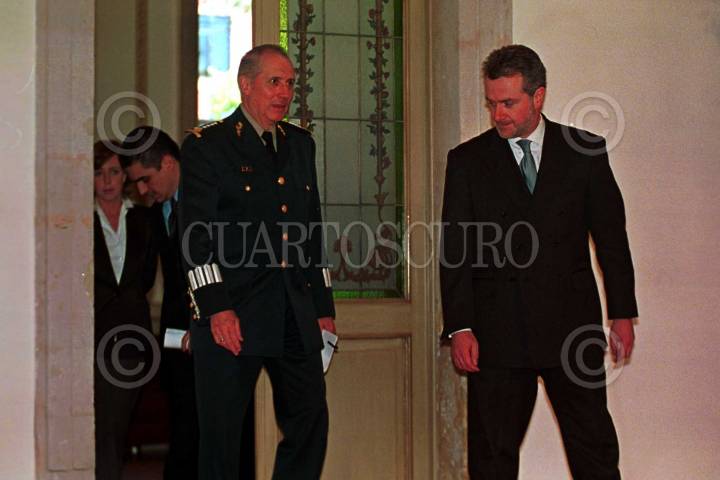 Ricardo Clemente Vega García, secretario de la Defensa Nacional, y Marco Antonio Peyrot, secretario de la Marina, llegaron juntos al Palacio Legislativo de San Lázaro, para escuchar el segundo Informe de Gobierno de Vicente Fox. FOTO: Oswaldo Ramírez/CUARTOSCURO.COM