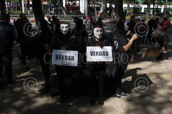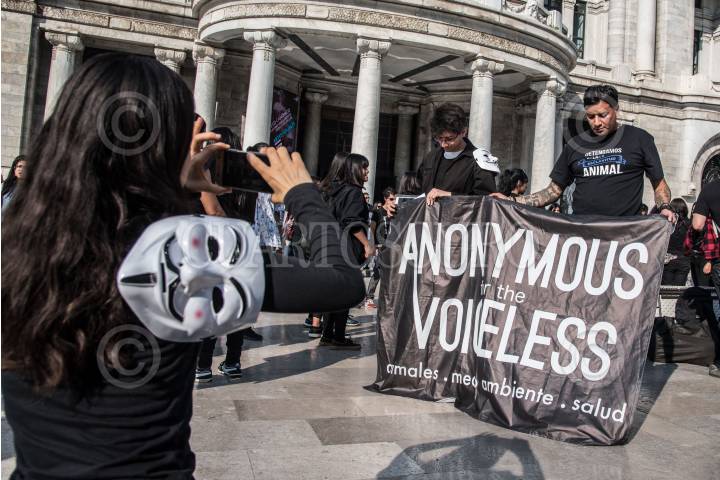 CIUDAD DE MÉXICO, 17NOVIEMBRE2018.- Jóvenes veganos pertenecientes a la organización civil "Anonymous for the voiceless" se manifestaron en la explanada del Palacio de Bellas Artes, para compartir con los traseúntes imágenes del proceso que implica la produccion de carne, y lácteos, y defender su postura de que el veganismo es un movimiento en defensa de los animales. FOTO: MARIO JASSO /CUARTOSCURO.COM