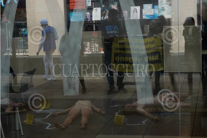 CIUDAD DE MÉXICO, 14MAYO2024.- Manifestación a favor de los derechos animales afuera de un restaurante de cortes de carne. FOTO: DANIEL AUGUSTO/ CUARTOSCURO.COM