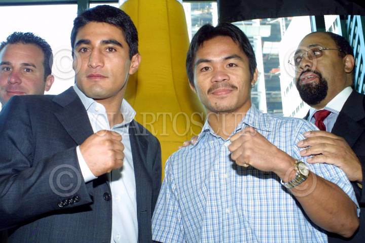 MEXICO, D.F. 19ENERO2005.- El boxeador mexicano Erick "El Terrible" Morales se enfrentará al filipino Manny Pacquiaom, en la pelea pactada el 19 de Marzo en el MGM de las Vegas. En la gráfica los acompaña el boxeador Jorge "Travieso" Arce. FOTO: Anastasia Elizarrarás/CUARTOSCURO.COM