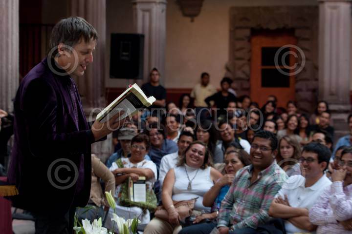 QUERÉTARO, QUERÉTARO, 04MAYO2011.- El escritor mexicano Xavier Velasco, ganador del premio Alfaguara (2003), inició su gira de presentaciones del libro "Puedo explicarlo todo" en el patio Barroco de la Universidad Autónoma de Querétaro. FOTO: DEMIAN CHÁVEZ/CUARTOSCURO.COM