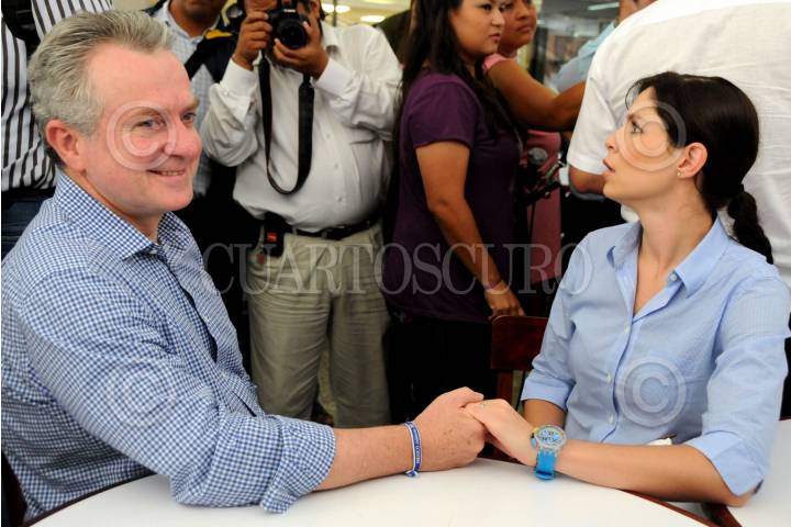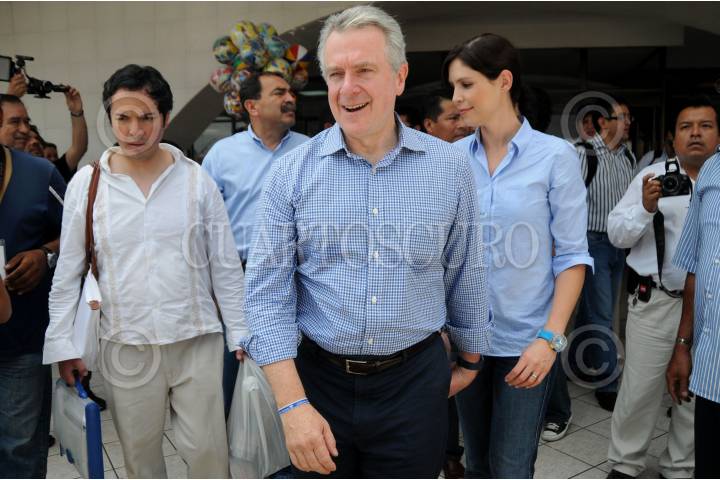 VERACRUZ, VERACRUZ, 06AGOSTO2011.- El senador de la República con licencia, Santiago Creel Miranda, visitó el Puerto de Veracruz, en compañía de su actual esposa Paulina Velasco de Creel, para dar a conocer en conferencia de prensa sus aspiraciones políticas y personales, posteriormente sostuvo un evento con panistas de la entidad. FOTO: FÉLIX MÁRQUEZ/CUARTOSCURO.COM