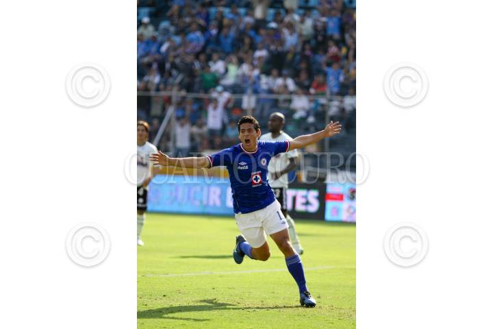 MÉXICO, D.F., 16OCTUBRE2010.- Con un gol tempranero gol en el minuto 6´ de Alejandro Vela, la Maquina del Cruz Azul fue construyendo una victoria de 3-0 en el Estadio Azul ante los Santos de Torreón. La victoria le sirve a los celestes para afianzar el superliderato. FOTO: MOISÉS PABLO/CUARTOSCURO.COM