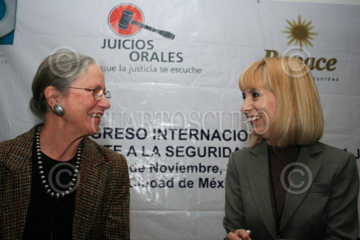 MÉXICO, D.F., 24NOVIEMBRE2008.-Joan Safford ex fiscal federal en Chicago y Paricia Lucila Gonzales Procuradora General de Justicia del estado de Chihuahua, durante la inauguración del "Congreso Internacional la Ventana trasparente a la Seguridad Publica y Justicia que se realiza en el World Trade Center, donde se tocaran temas como los nuevos sistemas de justicia penal en el país. FOTO: RICARDO CASTELAN/CUARTOSCURO.COM