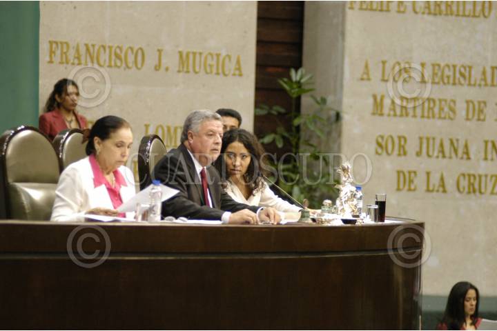MÉXICO, D.F. 24OCTUBRE2006.- Jorge Sermeño, presidente de la mesa directiva, y las diputadas federales Ruth Zavaleta Salgado y Ana Teresa Velasquez Beek en la Cámara de Diputados durante la sesión en el recinto legislativo en San Lázaro. FOTO: FERNANDO GARCÍA/CUARTOSCURO.COM