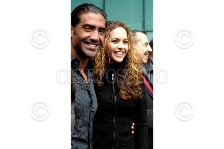 MEXDF27ABRIL2004.- Alejandro Fernández y Lucero son los protagonistas de la pelicula " Zapata" , en la foto los acompaña el director Alfonso Arau durante la presentación del filme. FOTO: Germán Romero/CUARTOSCURO.COM