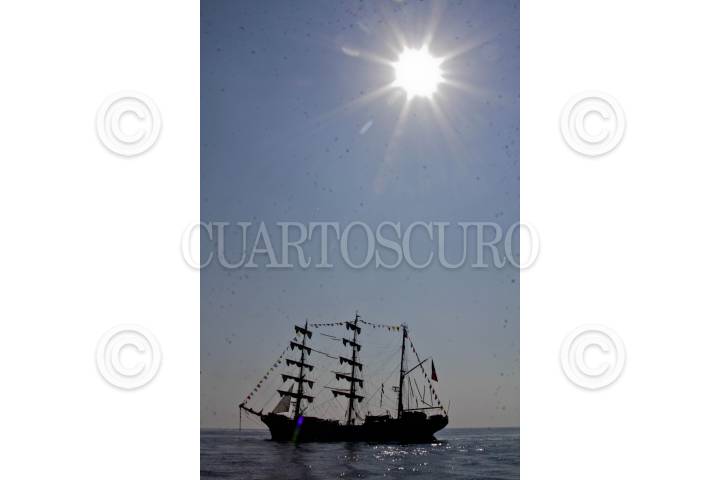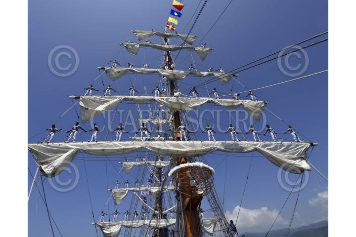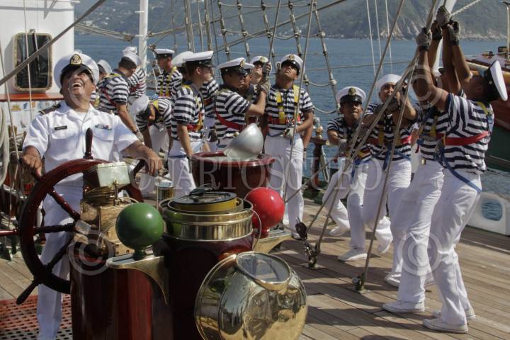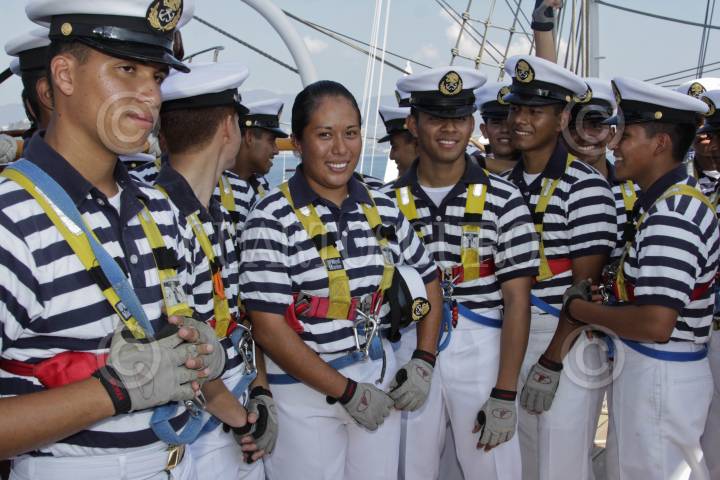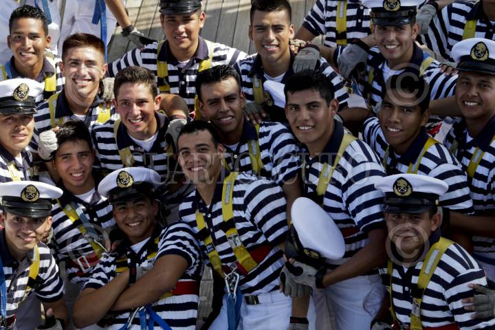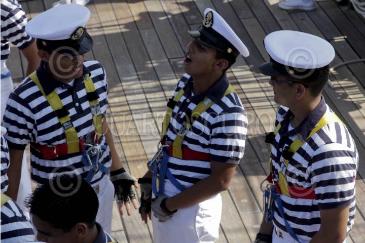 MÉXICO, D.F., 19NOVIEMBRE2012.- Estudiantes egresados de la Heroica Escuela Naval Militar regresaron por las costas de Acapulco luego de un viaje de meses por distintas partes del mundo en el Buque Escuela Cuauhtemoc como parte de su formación dentro de la Secretaria de Marina y Armada de México. FOTO: ENRIQUE ORDÓÑEZ /CUARTOSCURO.COM