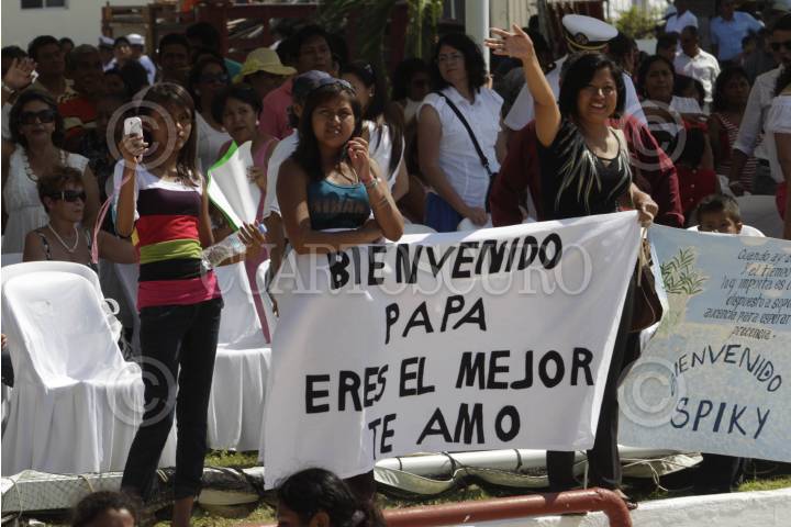 ACAPULCO, GUERRERO, 23NOVIEMBRE2011.- Familiares de los tripulantes del Buque escuela Cuauhtemoc, los esperaron en el muelle luego de meses de travesia por los mares como parte de su formacion luego de egresar de la Heroica Escuela Naval Militar FOTO: ENRIQUE ORDÓÑEZ /CUARTOSCURO.COM