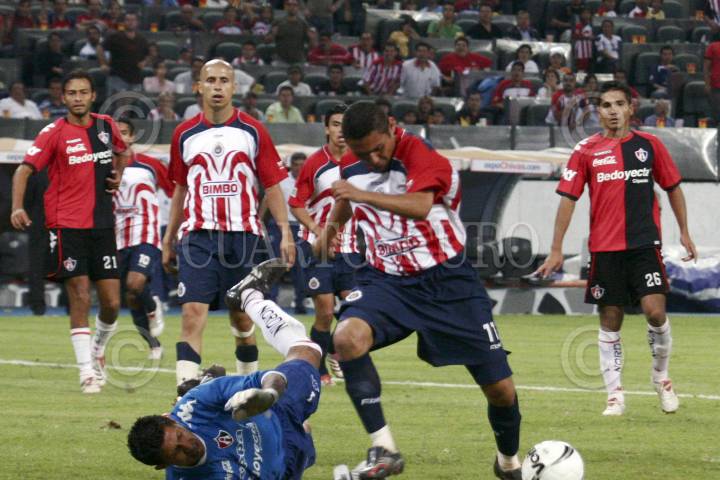 Guadalajara, Jalisco. México. Sábado 28 de octubre del 2006. De la Mano de Alberto "el Venado" Medina y Omar Bravo las Chivas derrotan al Atlas tres goles a uno en el clásica tapatio. El gol de los visitantes lo anota Daniel Osorno. FOTO: JOSÉ MARÍA MARTÍNEZ / CUARTOSCURO.COM