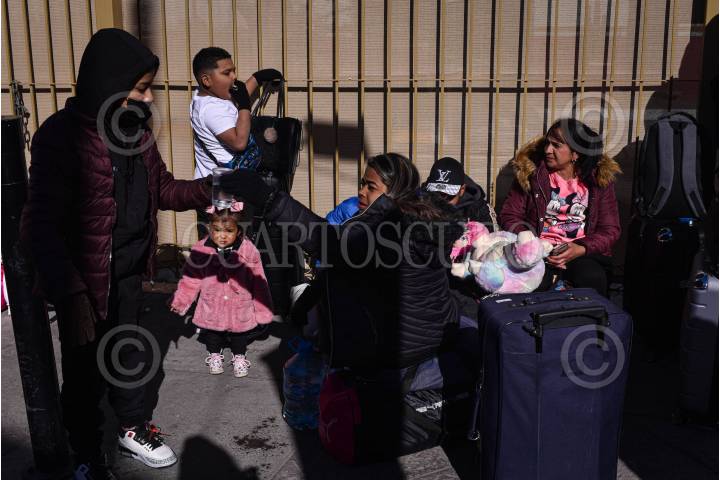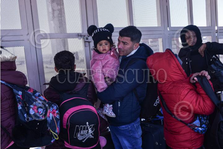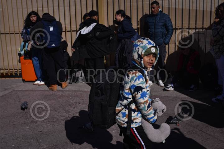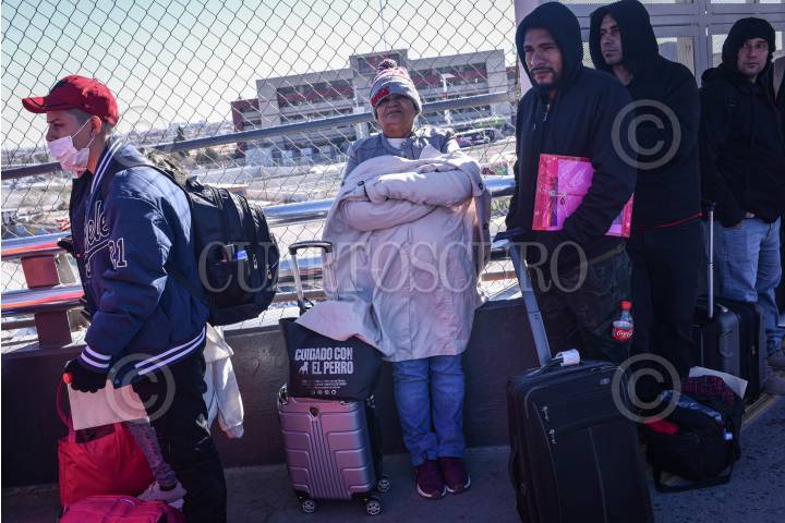 CIUDAD JUÁREZ, CHIHUAHUA, 19ENERO2025.- Un día antes de la toma de posesión de Donald Trump como presidente de los Estados Unidos, Migrantes que obtuvieron cita confirmada por CBP One (permiso humanitario que les permita el ingreso legal a Estados Unidos), bajo un clima gélido, ingresan por el Puente Internacional Paso del Norte. FOTO: PEDRO ANZA /CUARTOSCURO.COM