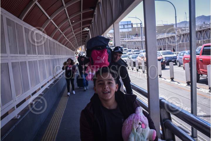 CIUDAD JUÁREZ, CHIHUAHUA, 18ENERO2025.- Migrantes que obtuvieron cita confirmada por CBP One (permiso humanitario que les permita el ingreso legal a Estados Unidos) ingresan por el Puente Internacional Paso del Norte.