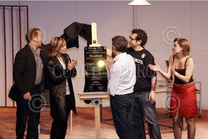 MÉXICO D.F., 09FEBRERO2008.- Después de más de dos décadas el grupo español Parchís se reunio y develaron esta noche la placa de las 100 representaciones de la obra de teatro Palabras Encadenadas al lado de los actores Yolanda Ventura y Alejandro Aragon. FOTO: RODOLFO ANGULO/CUARTOSCURO.COM