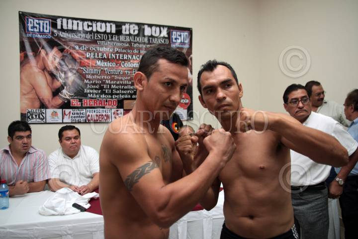 VILLAHERMOSA, TABASCO, 08OCTUBRE2009.- La pelea estelar debido al quinto aniversario del diario deportivo Esto y el Heraldo de Tabasco, se dará entre los boxeadores Samuel “Sammy” Ventura contra el colombiano “El Kali” Marcial que tendrá efecto la noche de mañana en el Palacio de los deportes de esta ciudad capital. FOTO: MARCO POLO GUZMÁN HERNÁNDEZ/CUARTOSCURO.COM