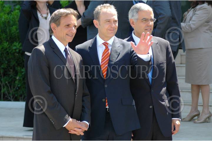 MÉXICO, D.F., 15ABRIL2010.- Calos Pascual, embajador de Estados Unidos en México; Arturo Sarukhan, embajador de México en Estados Unidos y Julián Ventura, subsecretario para América del Norte, después de que Michelle Obama, primera dama de Estados Unidos abordara su avión en el hangar presidencial del Aeropuerto Internacional de la Ciudad de México hacia su país después de una gira de trabajo que realizo en esta ciudad. FOTO: RODOLFO ANGULO/CUARTOSCURO.COM