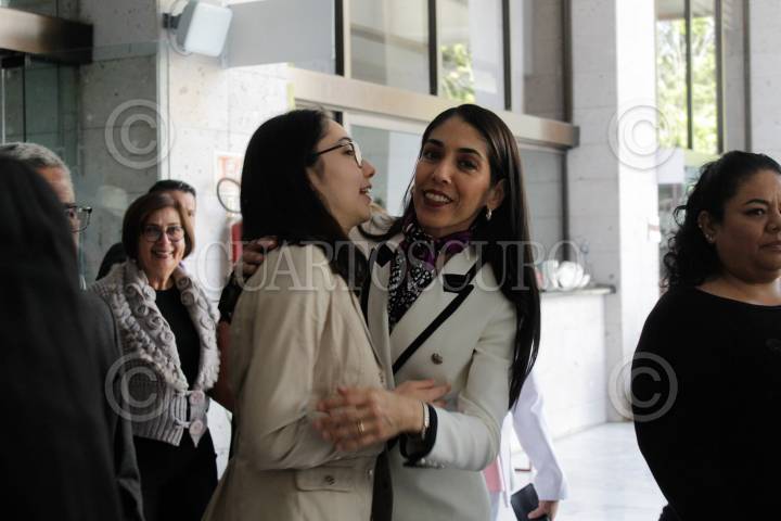XALAPA, VERACRUZ, 21ENERO2025.- Entre reclamos de colectivos de desaparecidos, compareció la fiscal general de Veracruz, Verónica Hernández Giadáns, ante el Congreso local. Al concluir se tomó fotos con los trabajadores de la fiscalía que la acompañaron. FOTO: YERANIA ROLÓN/CUARTOSCURO.COM