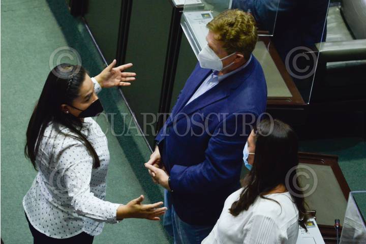 Mariana Rodríguez Mier; diputada del PRI; Martha Tagle, diputada de MC y Verónica Juárez, diputada y coordinadora del PRD, durante la sesión ordinaria de la Cámara de Diputados.