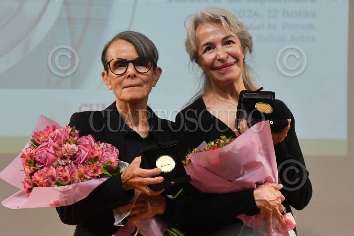 CIUDAD DE MÉXICO, 11SEPTIEMBRE2024.-Pura López Colomé, poeta y escritora, y Verónica Murguía, escritora, recibieron la "Medalla Bellas Artes" en la rama de literatura. El evento fue realizado en la sala Manuel M. Ponce del Palacio de Bellas Artes. FOTO: MARIO JASSO/CUARTOSCURO.COM