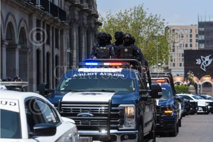 TOLUCA, ESTADO DE MÉXICO, 16JULIO2025.- Arranque Operativo Verano Seguro 2025, con la participación de 11 municipios como Toluca, Metepec, San Mateo Atenco, Almoloya de Juárez, Zinacantepec, Chapultepec, Mexicaltzingo, Guardia Nacional y Policía estatal, con el objetivo de reforzar la vigilancia en espacios públicos durante las vacaciones de verano, el cual culminará el 31 de agosto. FOTO: CRISANTA ESPINOSA AGUILAR/CUARTOSCURO.COM