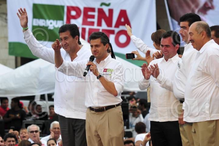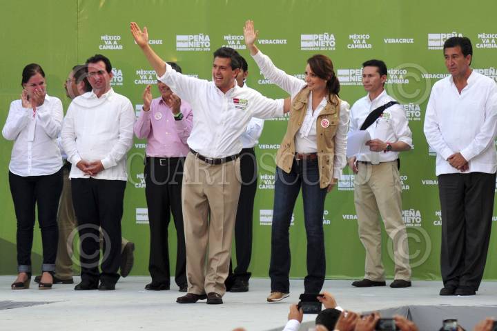 CÓRDOBA, VERACRUZ, 15MAYO2012.- Enrique Peña Nieto, candidato presidencial por la coalición "Compromiso por México", realizó un mitin en la plaza 21 de mayo, ante miles de simpatizantes priístas, lo acompaño su esposa Angélica Rivera y los candidatos al Senado y Diputaciones Locales de la entidad. FOTO: CORTESÍA FOTOVER/CUARTOSCURO.COM