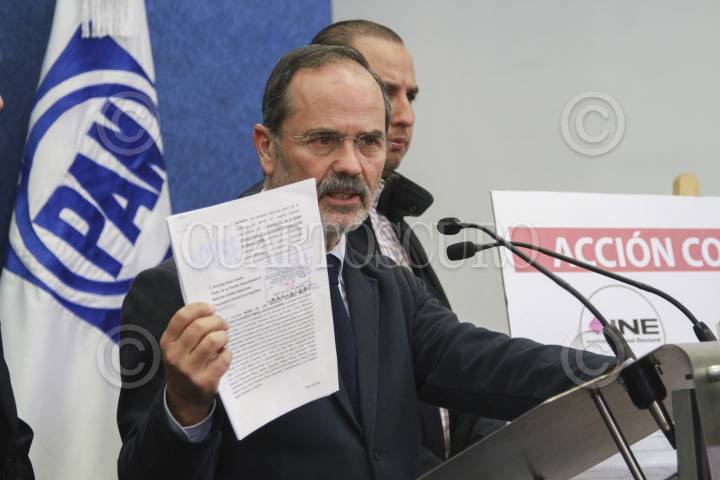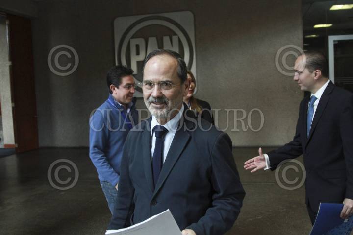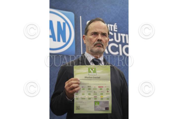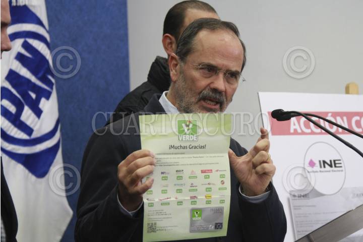 MÉXICO, D.F., 13MARZO2015.- Gustavo Madero, presidente del PAN, en conferencia de prensa, mostró y denunció al Partido Verde Ecologista de México, por repartir tarjetas promocionales de descuento previo al proceso electoral. FOTO: SAÚL LÓPEZ /CUARTOSCURO.COM