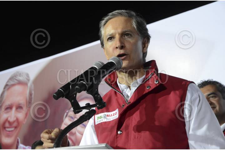 TLALNEPANTLA, ESTADO DE MÉXICO, 03ABRIL2017.- Alfredo del Mazo Maza, candidato de la coalición que integran los partidos Revolucionario Institucional, Verde Ecologista de México, Nueva Alianza y Encuentro Social para la gubernatura del Estado de México inició si campaña en los primeros minutos de este día frente al palacio municipal de Tlalnepantla. FOTO: ARTEMIO GUERRA BAZ /CUARTOSCURO.COM