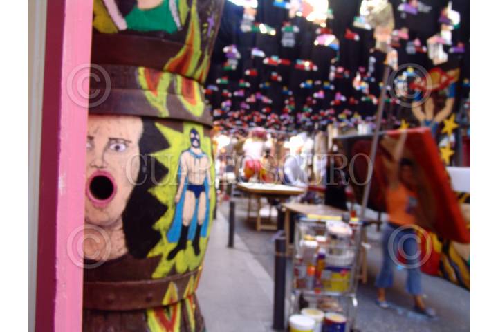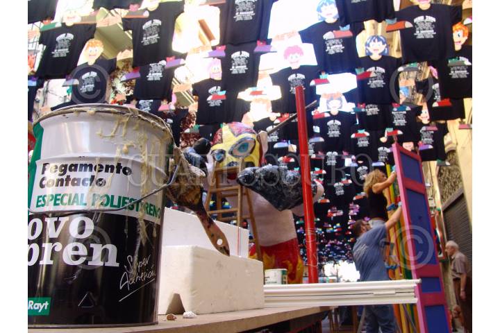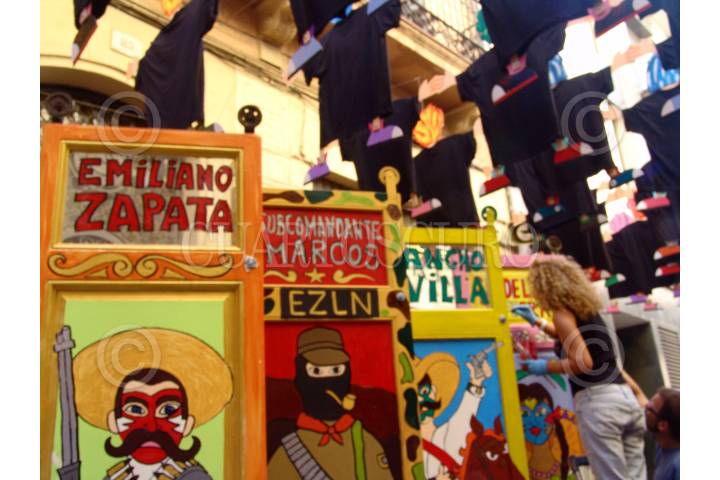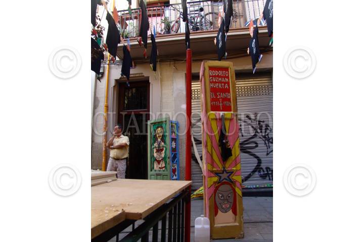 BARCELONA, ESPAÑA., 13AGOSTO2008.- Las calles del barrio de Grácia son adornadas cada año para su Fiesta del festival de la Asunción. Vecinos de la calle Verdi del Mig, se han inspirado en la lucha libre mexicana para realizar su montaje. La celebración dará inicio el próximo 15 de agosto. FOTO: TANYA LARA/CUARTOSCURO.COM