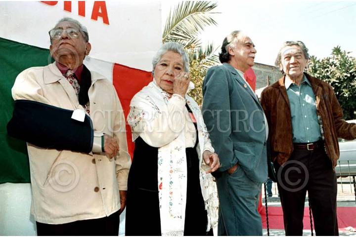 Gerardo Uzueta, Esperanza García de Campa, Carlos Payán y Arnoldo Martínez Verdugo durante el homenaje a Valentín Campa a 96 años de su nacimeinto.