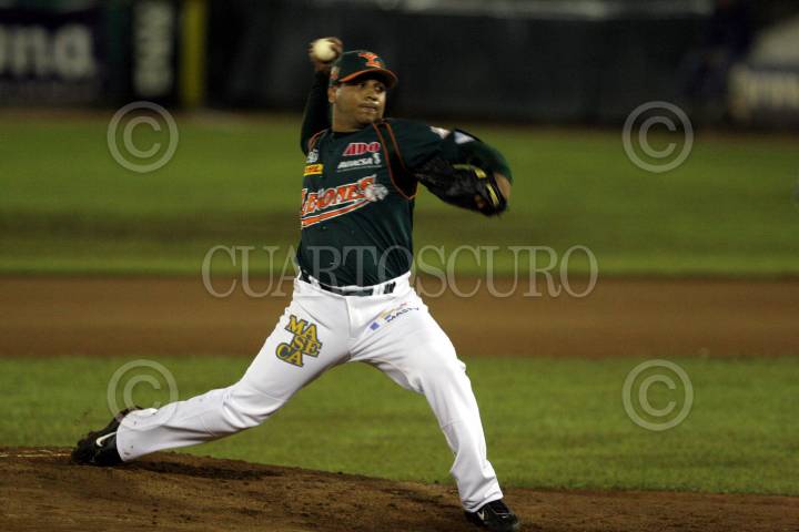 MÉRIDA, YUCATÁN, 28AGOSTO2007.- Oswaldo Verdugo, picher abridor de los Leones de Yucatán en el cuarto juego de la serie final de la LMB que se realiza en el estadio Kukulkan en donde se enfrentan a los Sultanes de Monterrey. FOTO: MARCO POLO GUZMÁN HERNÁNDEZ/CUARTOSCURO.COM