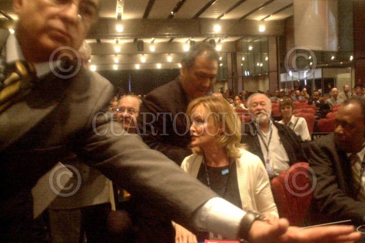 México D.F 20 Abril 2004.- Un guardia de seguridad protege a la actriz Jessica Lange, embajadora de la buena voluntad de la UNICEF, durante su visita a la 110 Asamblea de la Unión Interparlamentaria, en donde participan legisladores de 138 países del mundo. FOTO: Eunice Adorno/CUARTOSCURO.COM
