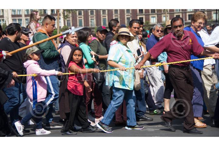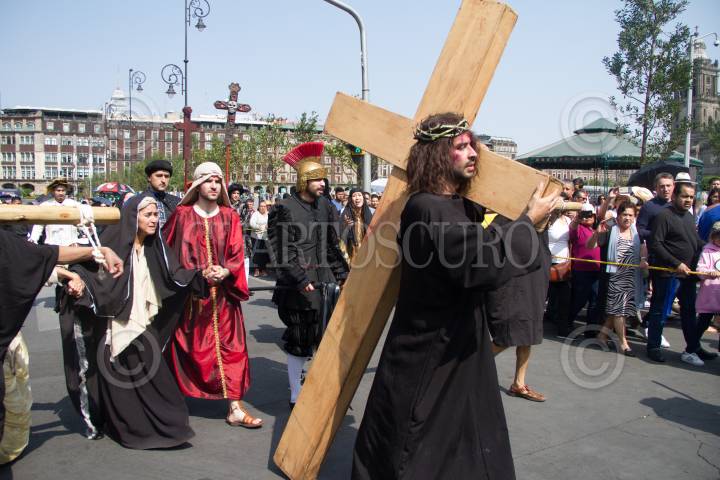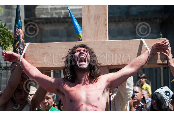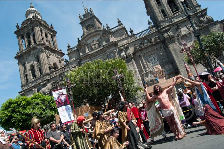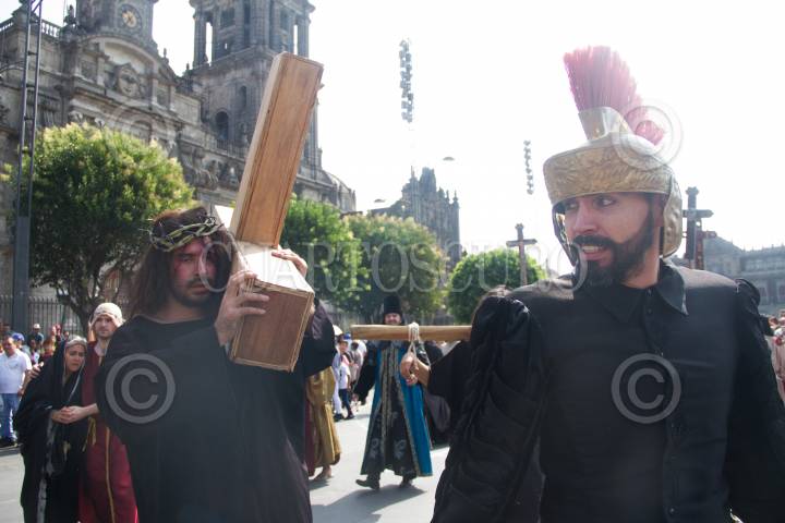 CIUDAD DE MEXICO 19ABRIL 2019.- Vía Crucis en el Centro Histórico de la Capital, pasión y muerte de Jesucristo, en las afueras de la Catedral Metropolitana. Centenas de personas se dieron cita para ver este importante pasaje de los diferentes momentos vividos por Jesús de Nazaret de su crucifixión y sepultura. FOTO: VICTORIA VALTIERRA / CUARTOSCURO.COM