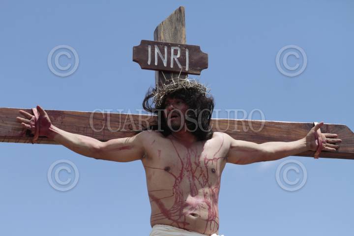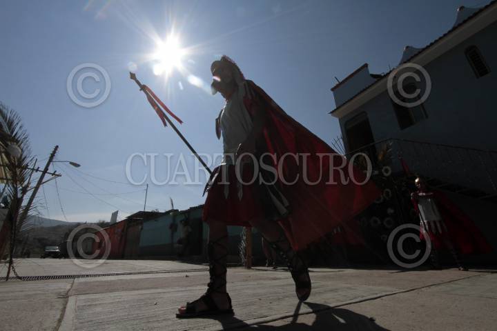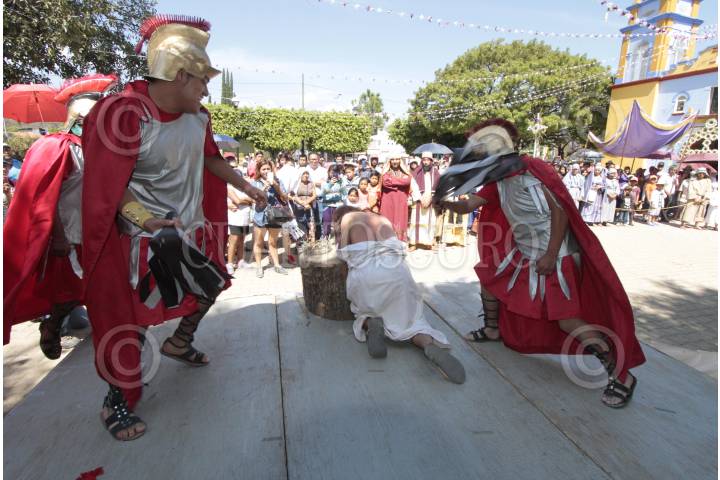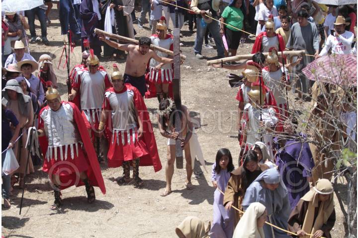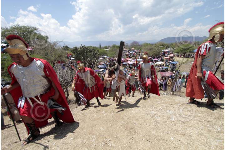 ÁNIMAS TRUJANO, OAXACA, 25MARZO2016.- Este medio día se llevó a cabo en los distintas localidades del estado de Oaxaca la representación de la "Pasión y muerte de Jesucristo" de acuerdo con la religión católica. Uno de estos sitios es el municipio de Ánimas Trujano, conurbado a la capital del estado en el que un grupo de jóvenes realizó la representación en la que Jesús de Nazareth es condenado a muerte y crucificado en el monte el Calvario. FOTO: ARTURO PÉREZ ALFONSO /CUARTOSCURO.COM