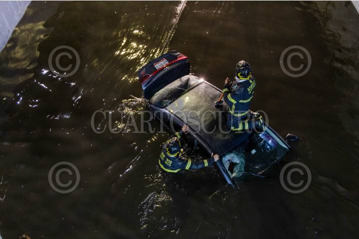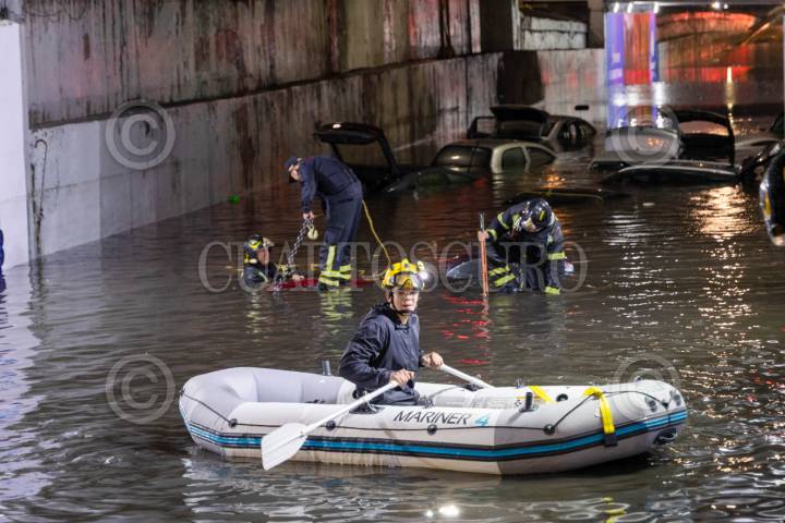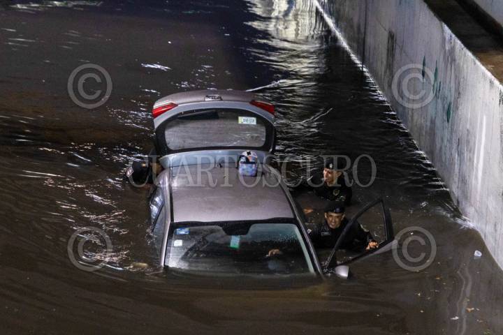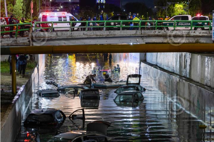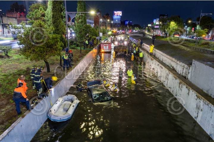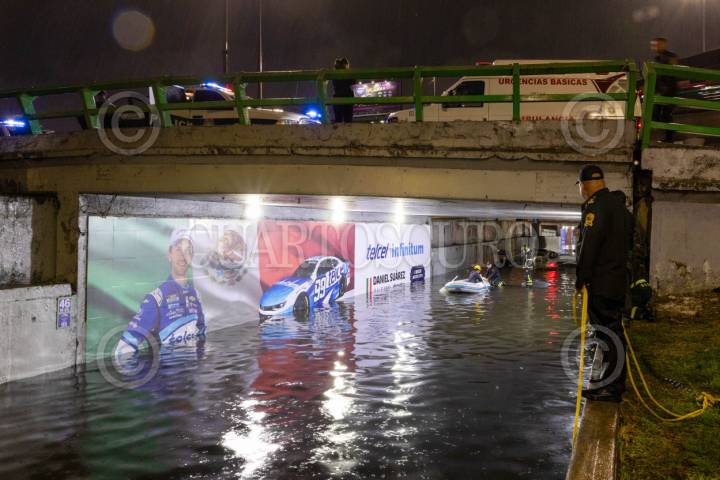 CIUDAD DE MÉXICO, 03JUNIO2025.- Tras las intensas lluvias de anoche el Viaducto Río de la Piedad, a la altura de Troncoso, se inundó quedando atrapados varios coches, sus conductores auxilios por personal de la Secretaría de Seguridad Pública para desalojar sus unidades. Se pronostica que hoy continuarán las precipitaciones pluviales. FOTO:CUARTOSCURO.COM