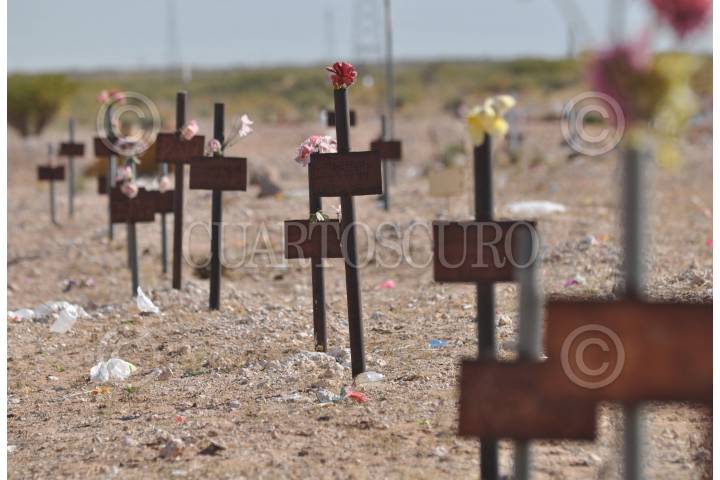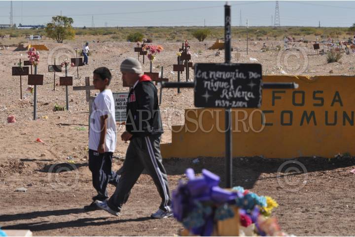 CIUDAD JUAREZ, CHIHUAHUA, 02NOVIEMBRE2010.- El vicario José René Blanco, tras oficiar la Santa Misa en el panteón San Rafael, acudió hasta la zona de la fosa común para dar la bendición a 2 mil 775 difuntos que allí se encuentran. El religioso mencionó que independientemente de la actitud o tipo de vida que hayan llevado, se trata de un ser humano y tiene derecho a descansar en paz, por lo que acudió hasta las tumbas para regar sobre ellas agua bendita y que con ello consigan su eterno descanso. FOTO: NACHO RUIZ/CUARTOSCURO.COM