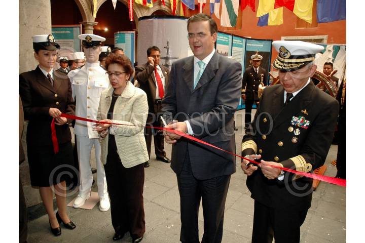 MÉXICO, D.F., 24JUNIO2009.- El jefe de gobierno Marcelo Ebrard acompañado del vicealmirante José Gabriel Martínez Berriel durante la inauguración de la Expo Mar de la Secretaria de Marina que se expone en el Museo de la Ciudad de México. FOTO: RODOLFO ANGULO/CUARTOSCURO.COM