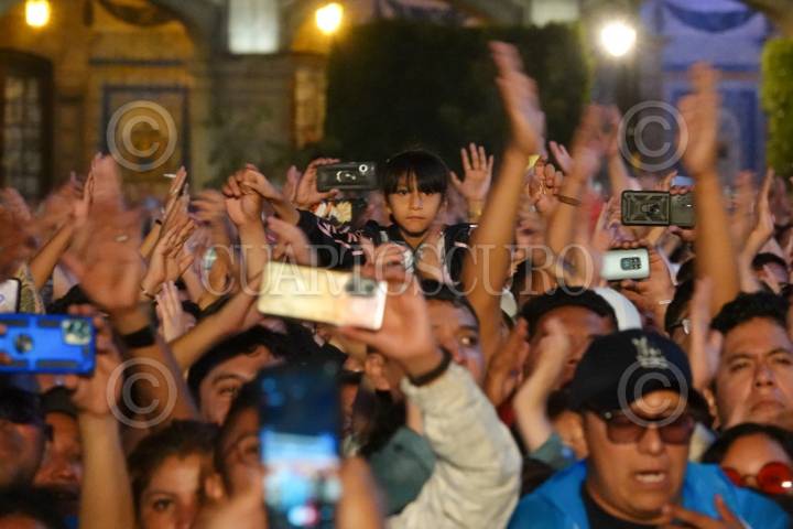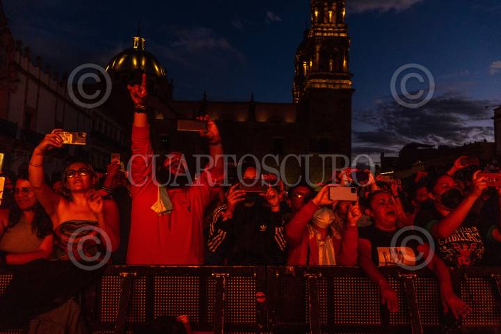 Jóvenes se dieron cita en la plaza de armas de Zacatecas para observar la presentación de Vicentico en el Festival Cultural Zacatecas 2022.
