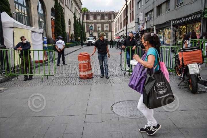 Elementos de seguridad resguardan las inmediaciones del zócalo capitalino con motivo de la visita de Kamala Harris, vicepresidenta estadounidense al país.