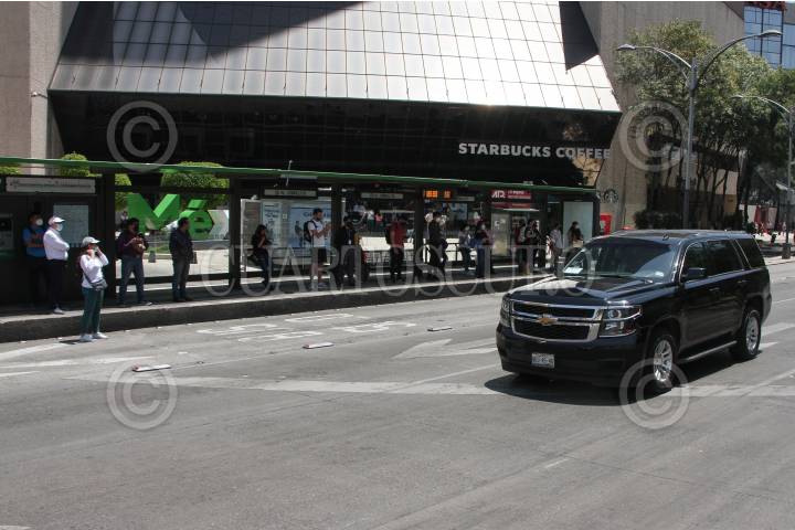 Capitalinos esperando el Metrobús graban el momento del paso del convoy de Kamala Harris.