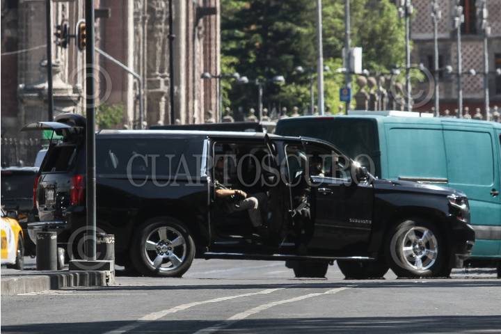 Personal de seguridad de Kamala Harris, a las afueras de Palacio Nacional.