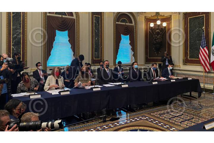 Tatiana Clouthier, secretaria de Economía; Marcelo Ebrard, secretario de Relaciones Exteriores; Kamala Harris, vicepresidenta de Estados Unidos, Antony Blinken, secretario de Estado de los Estados Unidos, secretario de Estado, encabezaron la reactivación del Diálogo Económico de Alto Nivel entre México y Estados Unidos (DEAN).
