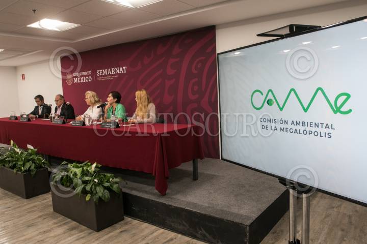 CIUDAD DE MÉXICO, 09JULIO2019.- Marina Robles, secretaria de Medio Ambiente de la capital, y J. Víctor Hugo Páramo Figueroa, titular de la Comisión de la Megalópolis (CAMe), ofrecieron conferencia de prensa para informar las acciones que implementarán en atención a los efectos de la suspensión definitiva decretada por el juicio de amparo radicado en el Juzgado Cuarto de Distrito en Materia Administrativa, llevada a cabo por una organización civil. Las autoridades indicaron que se seguirá informando sobre el estado de la calidad del aire en la zona metropolitana a través de las redes sociales ya establecidas, y se deberá acatar como límite de 100 puntos del índice para activar la fase preventiva, y de alcanzar los 150 puntos se adicionarán medidas restrictivas en Fase 1 de Contingencia. FOTO: MARIO JASSO /CUARTOSCURO.COM