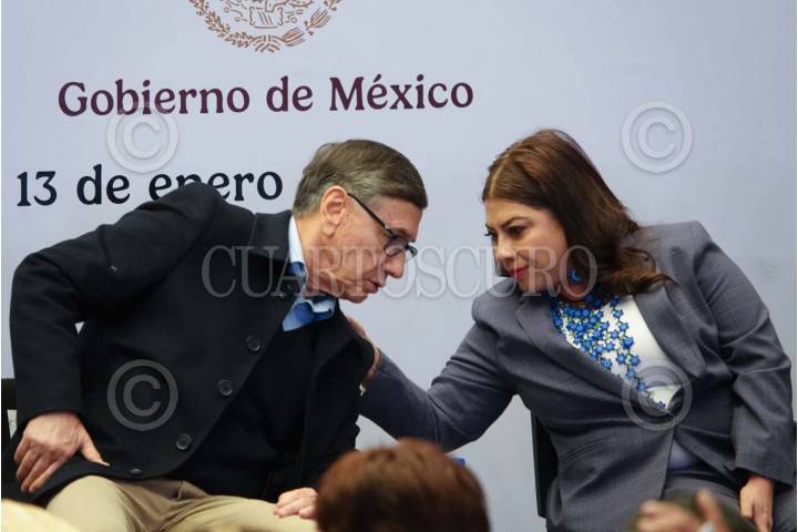 CIUDAD DE MÉXICO, 13ENERO2025.- Víctor Suárez Carrera, procurador agrario, y Clara Brugada, jefa de Gobierno, conversaron durante su participación en el Foro de Consulta: Los ejidos y las comunidades agrarias en el Segundo Piso de la Cuarta Transformación. El evento se realizó en el Museo de la Ciudad de México. FOTO: GRACIELA LÓPEZ/CUARTOSCURO.COM