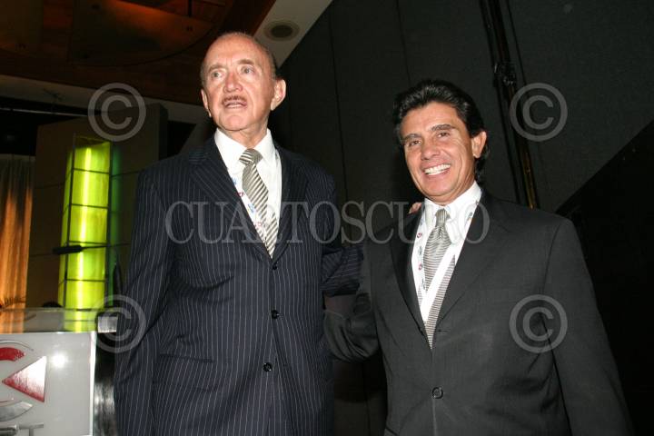 MÉXICO, D.F., 09OCTUBRE2007.- Ernesto Vidal y Rogelio Azcarraga, al finalizar la inauguración de la Semana de la Radio y la Televisión que se realiza en la capital. FOTO: MOISÉS PABLO/CUARTOSCURO.COM