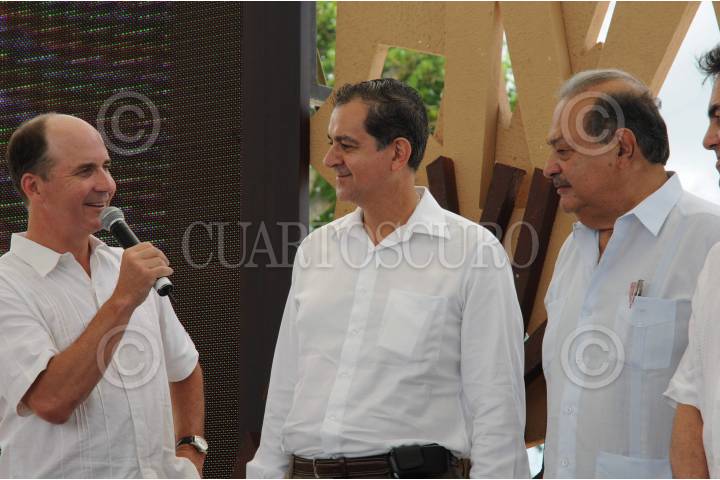 COZUMEL, QUINTANA ROO, 04JUNIO2009.- El secretario del Medio Ambiente, Juan Rafael Elvira Quesada y Jeffrey Davidow, asesor en jefe para asuntos de américa latina de Estados Unidos, anunciaron la firma de colaboración entre el Institue Of The Americas y SEMARNAT. FOTO: XIMENA DE LA SERNA/CUARTOSCURO.COM