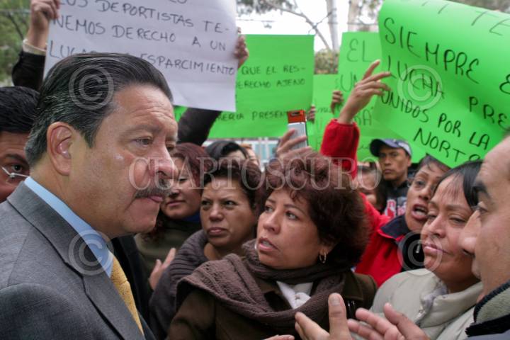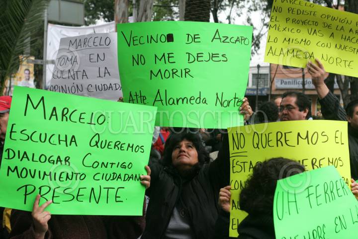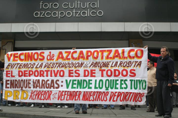 MÉXICO, D.F., 13ENERO2011.- Un grupo de manifestantes, se planto a las afueras del foro Cultural Azcapotzalco para exigir a Marcelo Ebrard se evite la destrucción de parques ya que son lugares recreativos para la gente del lugar. FOTO: ENRIQUE ORDÓÑEZ/CUARTOSCURO.COM