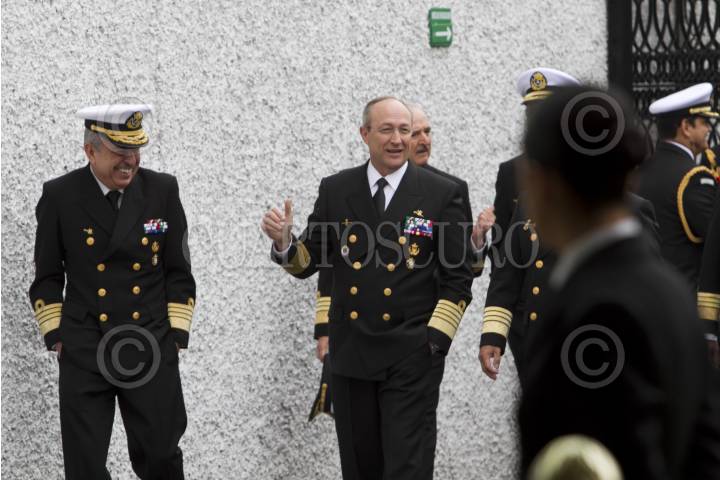 MÉXICO, D.F., 10DICIEMBRE2014.- Vidal Francisco Soberón Zanz, titular de la Secretaria de Marina Armada de México, a su llegada al club naval donde desayuno con representantes de los medios de comunicación y al final fue cuestionado por el caso de los 43 normalistas desaparecidos en Iguala, Guerrero el pasado 26 de septiembre. FOTO: GUILLERMO PEREA /CUARTOSCURO.COM